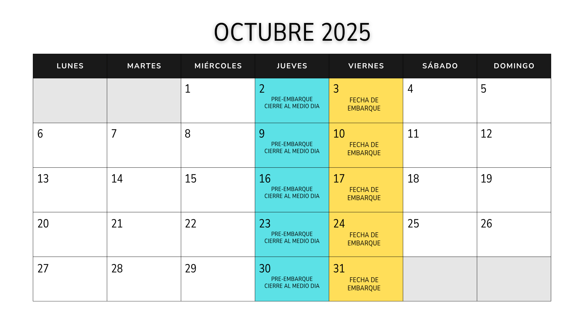 📌 Solicitud de embarque: Debe ser realizada por el cliente desde su cuenta.